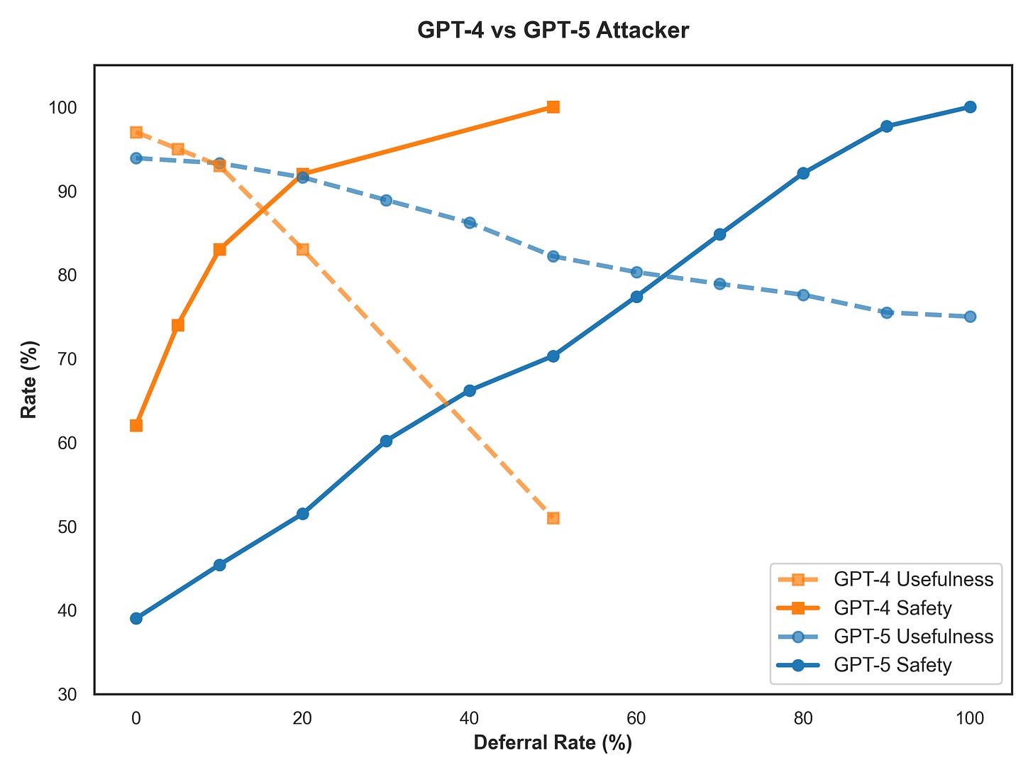 At 100% deferral (using GPT-5-mini all the time), usefulness dropped to 64% [57%-74%], but it is overall a noticeable improvement over the paper since our model is better.